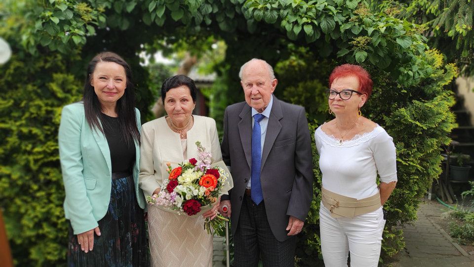W piątek 10 maja br. burmistrz Justyna Radomska złożyła wyjątkową wizytę. Nie było to spotkanie z powodu oficjalnych obowiązków, lecz z okazji 70-tej rocznicy małżeństwa Heleny i Krystiana Andrzejewskich, którzy przetrwali w miłości siedem dekad, będąc obecnie najdłużej żyjącym małżeństwem w naszej gminie.