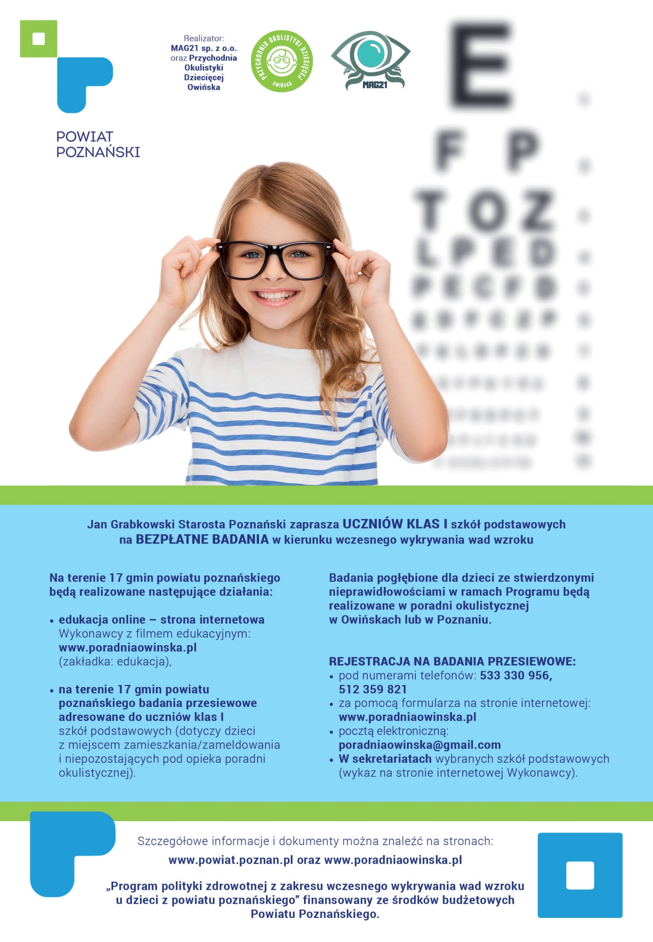 Powiat Poznański rozpoczyna kolejną edycję „Programu polityki zdrowotnej z zakresu wczesnego wykrywania wad wzroku u dzieci z powiatu poznańskiego” w roku szkolnym 2025/2026.Komunikaty